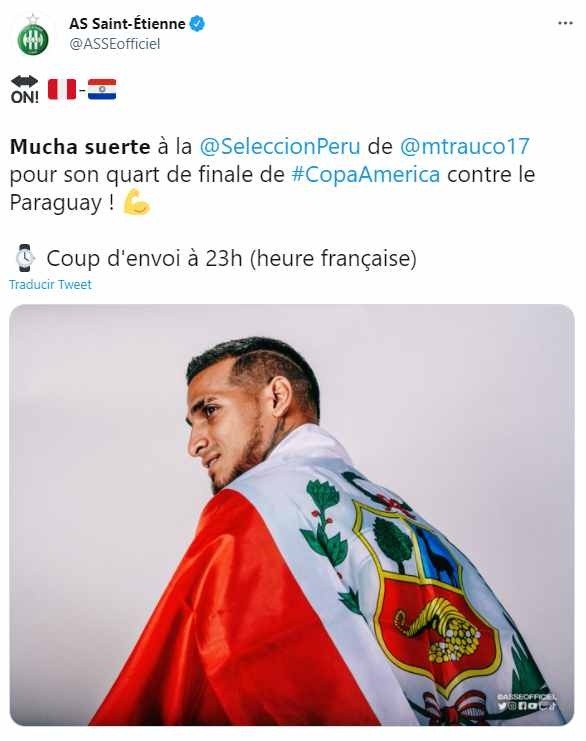 En medio de todo esto, el Saint Etienne volvió a dedicarle unas palabras a la Selección Peruana. Lo hicieron a traves de su cuenta oficial de twitter y no solo saludaron a Trauco, sino también a la Bicolor. Su mesnsaje fue muy particular: fue en una mezcla de idiomas.