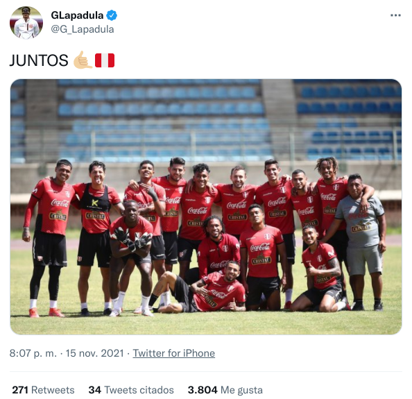 Ahora, este lunes, en la previa del juego contre Venezuela, también se manifestó en las redes. “Juntos“, escribió y puso una foto de los futbolistas de la Selección entrenando en Caracas. En ella, se ve a todos sonriendo y felices. Ojalá este martes, después del partido, todos estén igual de felices ¡Sí se puede!