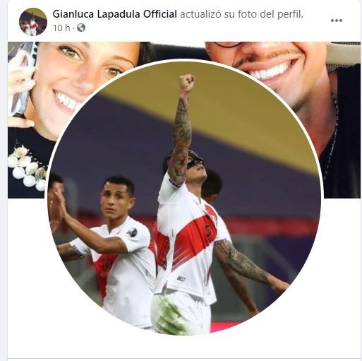 El ex Pescara nació en Turín-Italia y se nacionalizó peruano hace menos de un año, gracias al vínculo de su madre. Después de jugar con la ‘blanquirroja’, Gianluca Lapadula le ha tomado mucho cariño al país. Cuando ha estado en Lima ha recorrido las calles y se ha quedó maravillado con lo que se ha encontrado. Y, con un nuevo acto, ha reafirmado su pasión por Perú: el artillero ha colocado, como foto de perfil de Facebook, una imagen de él con el uniforme de la Selección Peruana y el brazo extendido hacia arriba.