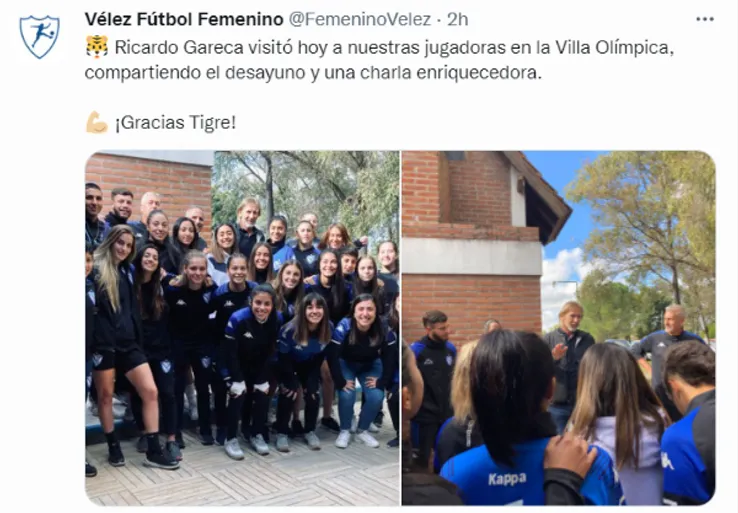 “Ricardo Garecavisitó hoy a nuestras jugadoras en la Villa Olímpica, compartiendo el desayuno y una charla enriquecedora. Gracias, ‘Tigre'”, fue el mensaje publicado en la cuenta de Twitter de la categoría femenina del club argentino.