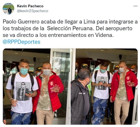A la Selección Peruana se le vienen sumando los jugadores que militan en el exterior. Este domingo 3 de octubre llegó Paolo Guerrero proveniente de Brasil donde juega en el Internacional de Porto Alegre. El delantero se integró a los trabajos dirigidos por Ricardo Garecaeste domingo, para afrontar, con la ‘bicolor’, los cotejos frente Chile, Brasil y Argentina.