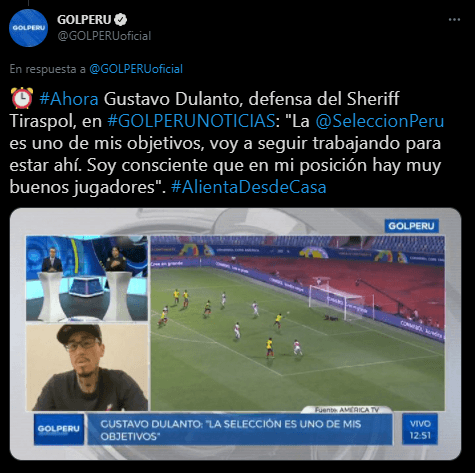 Sobre si aún mantiene su deseo de jugar por la Selección Peruana, Gustavo Dulanto no lo dudó: “La selección es uno de mis objetivos, voy a seguir trabajando para estar allí. Soy consciente que en mi posición hay buenos jugadores”. Además, sabe que estando en el extranjero puede sacarle ventaja a algunos compatriotas.