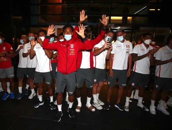 “Vamos ‘Blanquirroja’ que tenemos que ganar”o“Yo soy peruano, es un sentimiento”, fueron algunas de las frases que soltaron a una sola voz los hinchas de la ‘Bicolor’. Y en agradecimiento a ello, los jugadores se asomaron a las afueras del Hotel Hilton, donde saludaron desde la distancia a las decenas de personas que se reunieron para alentarlos desde tempranas horas de la tarde.