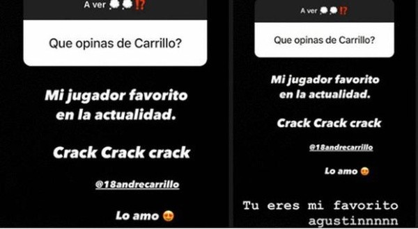 “Tú eres mi favorito, Agustín”, escribió André Carrillo en respuesta a ‘La Foquita’. Segundos después, los seguidores de ambos futbolistas pedían que se juntaran, en por lo menos, una videollamada para poder disfrutar de ellos un instante, lo cual no llegó a ocurrir y Jefferson Farfán siguió respondiendo a sus fans.