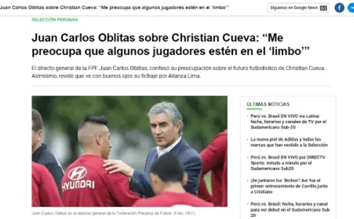 Christian Cueva es motivo de preocupación, así lo señala el propio Juan Carlos Oblitas: “Sí, me preocupa que algunos jugadores estén en el ‘limbo’ con el tema de la continuidad en su carrera (por Christian Cueva). No he hablado con él. En los últimos tiempos, después de lo que se dio sobre estos problemas en los que regresó de Arabia Saudita, no he podido hablar con él”.
