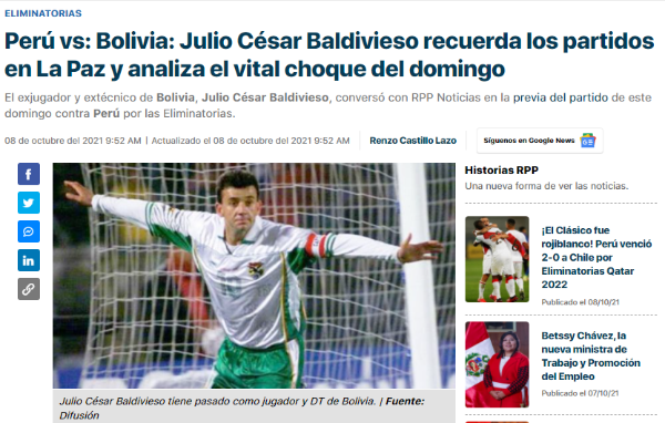 Una de las voces autorizadas del fútbol boliviano es ‘El Emperador’, Julio César Baldivieso, dejó en claro cómo ve a ambas selecciones en mención: “Han sido muy irregulares en las últimas Eliminatorias. Lamentablemente siempre estamos entre los últimos lugares y estos tres puntos van a ser fundamentales tanto para la Selección Peruana como para Bolivia”.