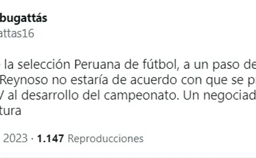 “Se comenta que la selección Peruana de fútbol, está a un paso de quedarse sin cuerpo técnico. Reynoso no estaría de acuerdo con que se privilegie el negocio de la TV en el desarrollo del campeonato. Un negociado más que nos pasaría gran factura”, publicó.