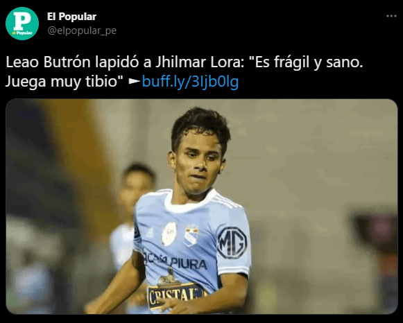 “¿Lora está convocado, no? Es muy frágil y sano. Ya desde el año pasado, en la final entre Alianza vs. Cristal, que para mí tiene que jugar Madrid. No sé… juega muy tibio. Si yo estuviera en el arco, le diría: ‘oye, compadre, ¡despierta! ¡¿Qué te pasa? ¡Despierta por favor! En puntitas juega, en puntitas”. Fue lo que consideró ‘el 1 íntimo’, cuando se le preguntó por el lateral derecho de Sporting Cristal.