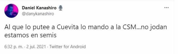 Entonces, Daniel Kanashiro, narrador de DirecTV, salió a defender a Aladino: “Al que lo putee a Cuevita lo mando a la CSM…no jodan estamos en semis”.