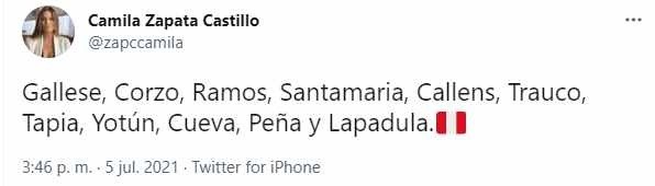 La alineación la confirmaron distintos comunicadores hace solo unos minutos:Gallese, Corzo, Ramos, Santamaria, Callens, Trauco, Tapia, Yotún, Cueva, Peña y Lapadula. El que entraría por la Culebra sería entonces el ex-Sport Boys