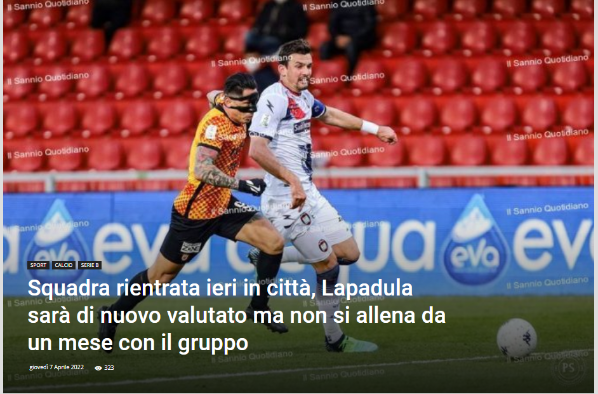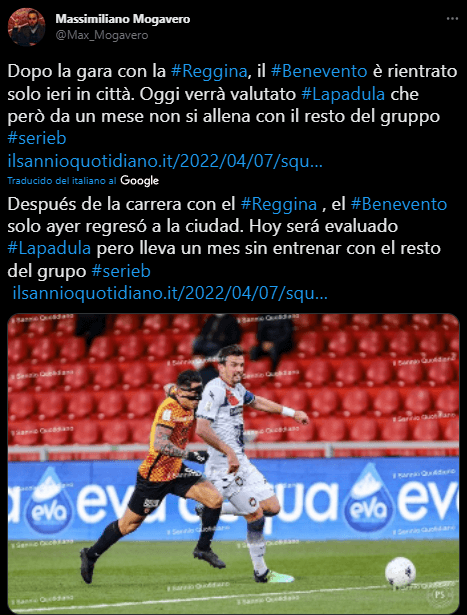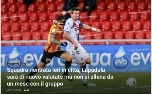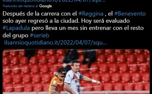 “El equipo volvió ayer a la ciudad, Lapadula volverá a ser evaluado, pero lleva un mes sin entrenar con el grupo”. Informó el portal ‘Il Sannio Quotidiano’ mediante su periodista, Massimiliano Mogavero, quien en su cuenta de Twitter presentó este dato de la siguiente manera.