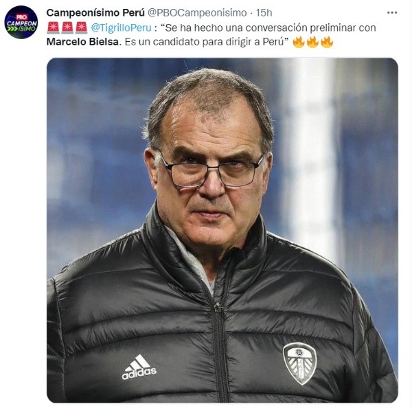Que Marcelo Bielsa es un técnico que goza de un prestigio mundial es conocido y que, en esa medida, la Federación Peruana de Fútbol tuviera una conversación con su entorno, es una probabilidad que se da teniendo en cuenta que el estratega argentino actualmente no tiene club y que la Selección Peruana busca entrenador.