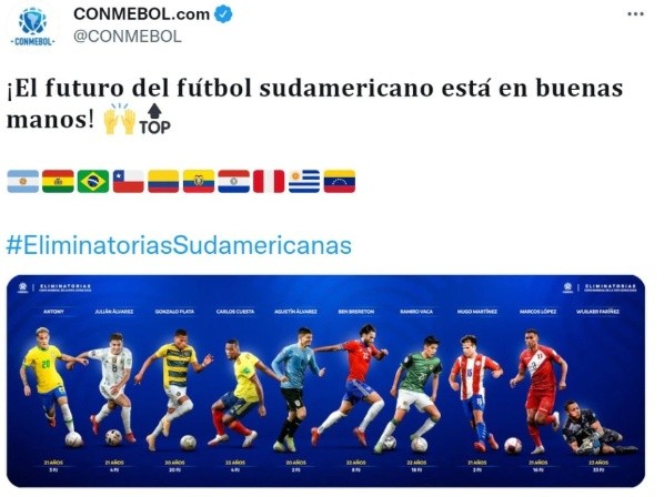 La CONMEBOL destacó la figura de Marcos López en su Instagram junto a otros futbolistas como el guardameta venezolano, Wuilker Fariñez y más. El máximo ente del fútbol sudamericano puso: “¡El futuro del fútbol sudamericano está en buenas manos!”, incluyendo al lateral izquierdo de la ‘bicolor’.