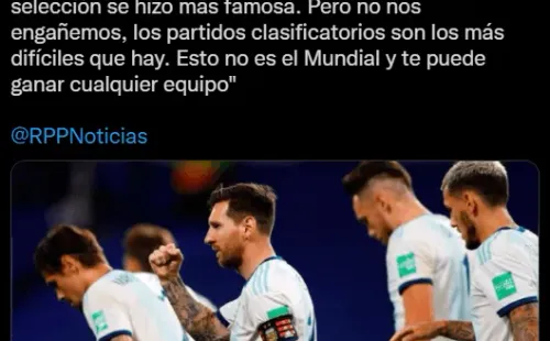 “Perú debe aprovechar esas poquitas oportunidades que se le presente en el partido ante Argentina. Perú sabe el potencial que tiene Argentina y tiene que reconocerla. Con eso debe tratar de no equivocarse”. Dejando en claro que no hay un favorito absoluto para el duelo de este jueves a las (6:30 PM – HORA PERUANA) en el Estadio Monumental.