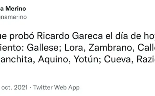 El once, entonces, quedó de la siguiente manera:Gallese; Lora, Zambrano, Callens, Trauco, Canchita, Aquino, Yotún; Cueva, Raziel y Lapadula. Ya se verá cuál de ellos se mantiene y cuál termina en el banco. Nada se puede confirmar hasta mañana.