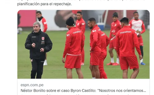 La Federación Peruana de Fútbol fue citada por la FIFA paraparticipar del proceso del ‘Caso Byron Castillo’, sobre elpedido de Chile de descalificar a Ecuador del Mundial. En ese sentido,Néstor Bonillo, preparador físico de la ‘blanquirroja’ fue consultado sobre la situación del seleccionado ecuatoriano y optó por enfocarse solo en lo que está por venir para el equipo de Ricardo Gareca.
