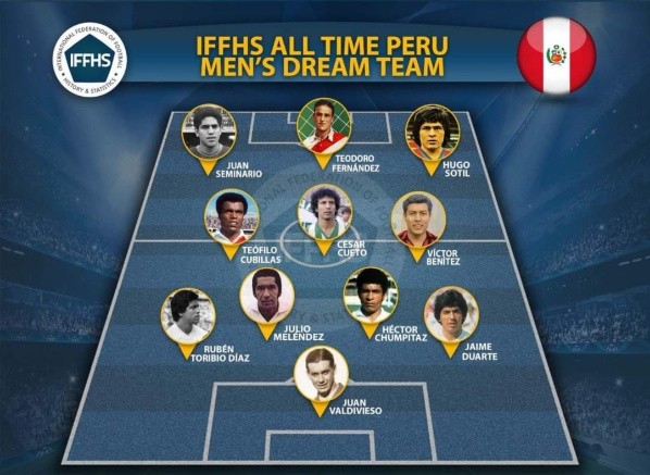 La Federación Internacional de Historia y Estadística de Fútbol alineó el mejor 11 de la Selección Peruana en la historia del fútbol: Juan Valdivieso; Rubén Díaz, Julio Meléndez, Héctor Chumpitaz, Jaime Duarte; Teófilo Cubillas, César Cueto, Víctor Benítez; Juan Seminario, Teodoro Fernández, Hugo Sotil. Esas fueron las grandes estrellas que alineó el IFFHS.