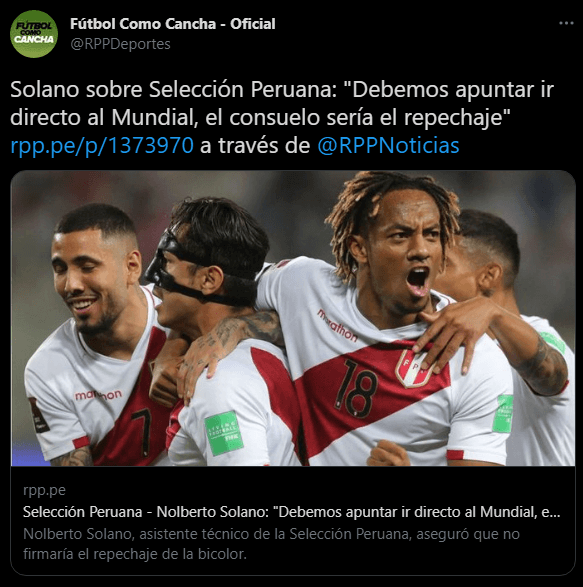 Confirmando la idea del profesor Ricardo Gareca, de clasificar sin esperar una repesca: “Primero hay que pensar y apuntar a ir directamente al Mundial, el consuelo sería quedarnos en el repechaje. En caso de lo segundo, sería un partido duro. Pero no es bueno adelantarnos a nada”.