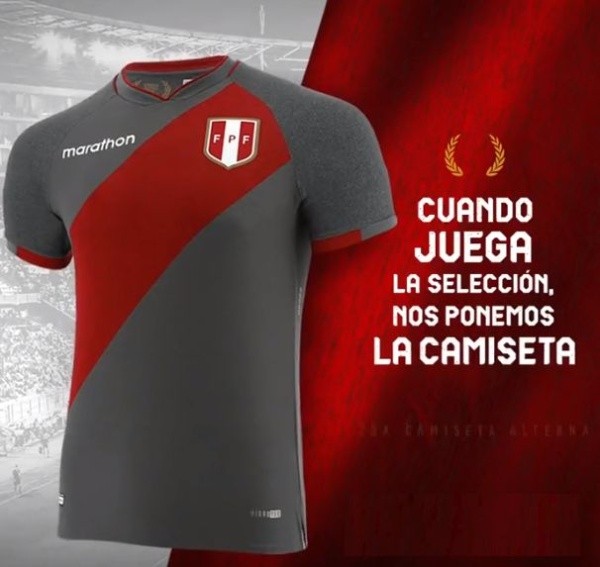 Esta sería la camiseta alterna para la Selección Peruana. “Con un diseño moderno del cuello con vivos rojos del mismo tono de la franja sobre un fondo gris elegante”, publicó la Federación Peruana de Fútbol. Dentro del cuello, en dorado, están incluidas las palabras “Unidos Somos Más Fuertes”. Sin duda alguna la segunda indumentaria más de uno querrá tenerla.