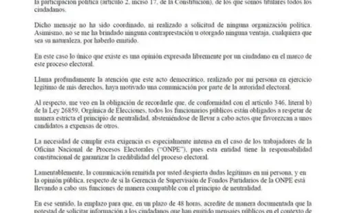 Esto habría molestado al Caballito que respondió también en un comunicado negando pagos: “la comunicación remitida por usted despierta dudas en mi persona respecto de si laGerencia de Supervisión de Fondos Partidarios de la ONPEestá llevando a cabo sus funciones de manera compatible con el principio de neutralidad”.
