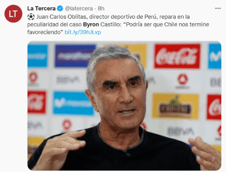 Juan Carlos Oblitas, director deportivo de la Federación Peruana de Fútbol, se refirió al reclamo realizado por Chile sobre el tema de Byron Castillo, señalando que espera que el fallo de la FIFA se resuelva lo más rápido posible. Además, declaró sobre la logística planificada que tiene la Selección Peruanapara el amistoso ante Nueva Zelanda y el repechaje intercontinental.