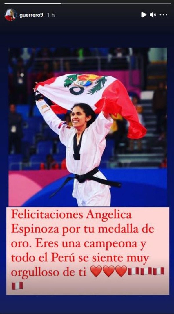 El 9 subió una foto de Angélica Espinoza levantando la bandera del Perú. Se le ve sonriendo y celebrando después de consolidar su triunfo. Tras ella, el delantero puso su texto en el que la saluda y le manifiesta su orgullo.