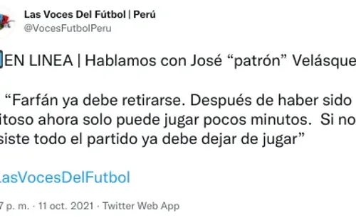 Uno que no se salvó fue Jefferson Farfán. José el Patrón Velasquez habló de la Foquita este lunes y lo juzgó por su incapacidad de jugar más tiempo. De hecho, hasta consideró que ya no está para seguir en el fútbol profesional por su condición física.
