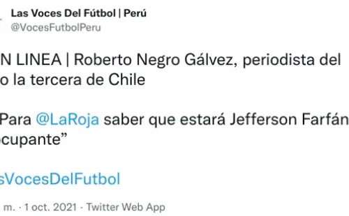 “Para La Roja saber que estará Jefferson Farfán es preocupante”, manifestó el comunicador. Además, el mismo periodista confirmó que Vargas no estará. Ahora, habrá que ver si el Tigre lo convoca y espera su situación en la banca ¡Sí se puede!