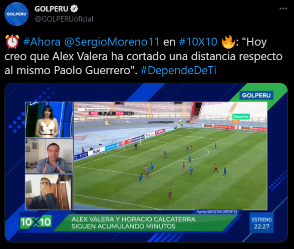 La cual no gustó para nada a los hinchas de la Selección Peruana, y se fueron contra sus dichos. El principal acusado es el panelista de ’10×10′, Sergio Moreno, quien dejó en claro lo siguiente: “Hoy creo que Alex Valera ha cortado una distancia respecto al mismo Paolo Guerrero”.