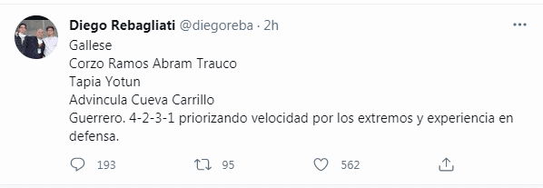 A horas del encuentro, se confirmó de manera extraoficial la formación para el encuentro de este jueves. Y sí, la novedad es el anuncio de Guerrero en esta formación. Aunque no estará con dupla con Gianluca Lapadula como se había rumoreado en la previa, será la única referencia en la delantera.Será un 4-2-3-1 priorizando la velocidad de los extremos y la experiencia de la defensa.