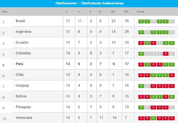 De momento, los dirigidos por Ricardo Gareca se vienen preparando para jugar la penúltima fecha doble frente a Colombia de Barranquilla y Ecuador en Lima. De ganar los dos compromisos podríamos ingresar a la zona de clasificación directa, a falta de 2 partidos para saber qué selecciones llegan al Mundial. Brasil y Argentina ya cuentan con un cupo asegurado en la mayor fiesta de fútbol mundial.