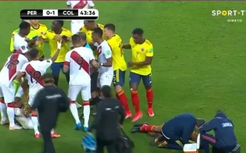 Cuando parecía que todo estaba favorable para Perú, llegó el gol de Colombia tras un error en el arco de Pedro Gallese (considerado como blooper). Minutos después, Miguel Trauco cometió esta lamentable jugada.