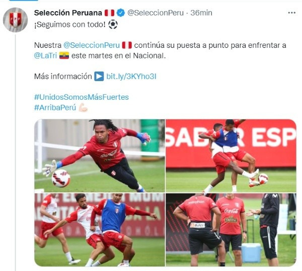 La selección de Ecuador vendrá a llevarse los tres puntos en Lima, ya que si logra la victoria clasificarían de manera directa al Mundial de Qatar 2022. La Selección Peruana no permitirá que el ‘Tri’ festeje en el estadio Nacional, por ese motivo se están preparando para derrotar a los dirigidos por Reinaldo Rueda, en la práctica del lunes 31 en el reciento donde Perú hace de local.