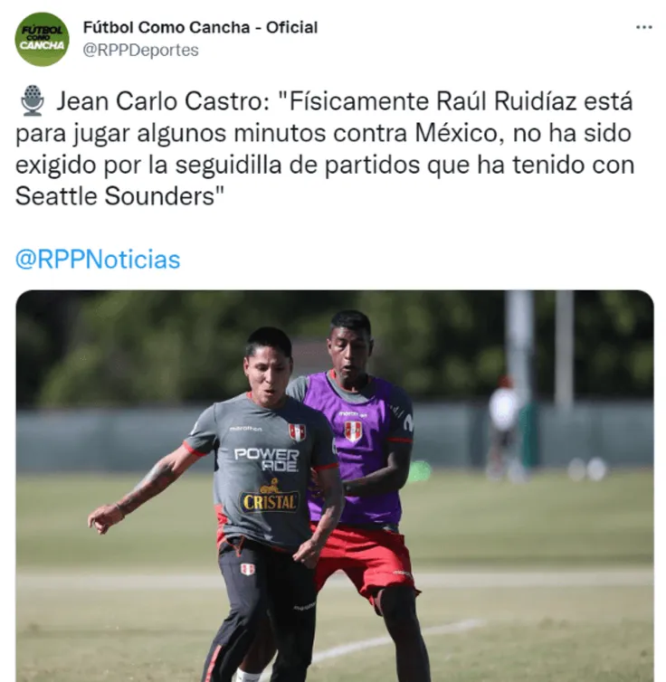 “Físicamente, Raúl Ruidíaz está para jugar algunos minutos contra México, no ha sido exigido por la seguidilla de partidos que ha tenido con Seattle Sounders”, sostuvo el comunicador en una entrevista para ‘Futbol Como Cancha’ de RPP Noticias.