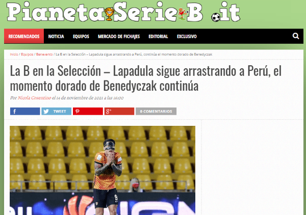 Luego de la victoria de ‘La Blanquirroja’ ante Bolivia por 3-0, con un gol del atacante del Benevento de la Serie B. El medio informativo ‘Pianeta.It’ hizo una reseña donde el principal actor de la nota informativa, es el hijo de doña Blanca Vargas. A quien lo destacan por sus goles y entrega.