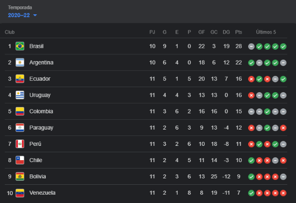 Porque nos dejarían en la penúltima casilla con 11 unidades. Chile sumaría 13, Bolivia 12. Quedándose Paraguay con 12, y Venezuela última con solamente 7. El panorama no es nada bueno, por eso era importante sacar un punto ante ‘La Amenaza Verde’, pues los números apremian a los dirigidos por ‘El Tigre’.