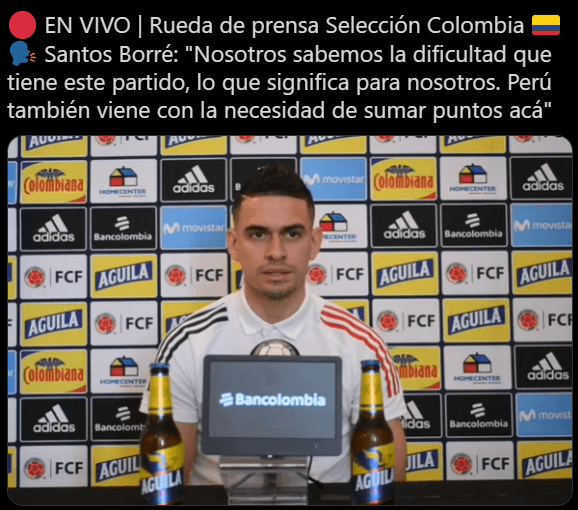 También, Rafael Santos Borré destacó que el viernes se enfrentarán dos selecciones con las mismas oportunidades: “A nivel de selecciones, las bajas en los equipos pueden ser importantes, pero también se tienen buenas variantes. Sabemos de la dificultad del partido contra Perú. Ellos también vienen con necesidad”