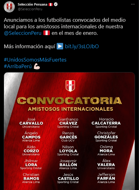 Porque ojo, esta lista solamente son de futbolistas que juegan en ‘Liga 1’. Los considerados por ‘El Tigre’ son:Álex Valera (Universitario) y Jefferson Farfán (Alianza Lima). A estos se les sumarán los extranjeros de la MLS, los cuales ya entrenan con este grupo. Y los futbolistas internacionales que puedan conseguir permisos especiales. Vamos con todo.