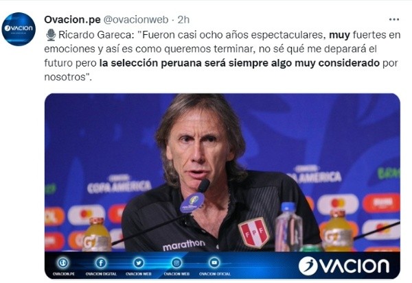 “Me hubiese gustado ganar un título. Creo que la Selección Peruana estaba en las condiciones. Dios quiere que se pueda dar“, comentó bastante animado Ricardo Gareca, técnico argentino de 64 años.