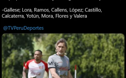 Según publicó el periodista de TVPERU DEPORTES, Renato Landívar, ‘El Tigre’ trabajó el siguiente once para poder presentarse mañana en las canchas de VIDENA. En lo que será un partido de preámbulo, para los amistosos internacionales contra Panamá y Jamaica.