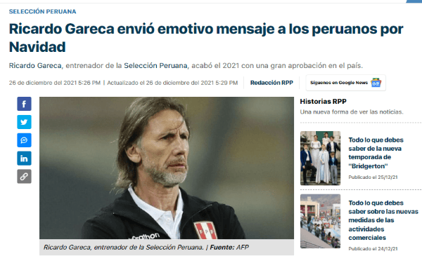 Con motivo del cierre de año, ‘El Flaco’ saludó a todo el pueblo peruano en un video institucional: “Quería mandarles un gran abrazo. Gracias por el apoyo de siempre y estar al pendiente de la selección. Felices fiestas. Les deseo lo mejor para ustedes, sus familias y, por supuesto, para Perú”.