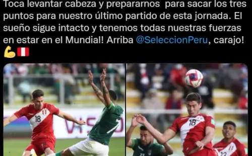 “Definitivamente no era el resultado que queríamos. Toca levantar cabeza y prepararnos para sacar los tres puntos para nuestro último partido de esta jornada ¡El sueño sigue intacto y tenemos todas nuestras fuerzas en estar en el Mundial! ¡Arriba Selección Peruana, carajo!”. Comentó el delantero del Club León de México.