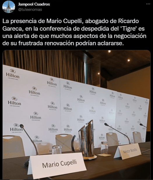 12:47 – MARIO CUPELLI (ABOGADO DE RICARDO GARECA):”El hijo de Ricardo (Gareca) y yo siempre hablamos con el presidente, y esta vez no fue así. Nosotros sí teníamos decisión, quién sabe si la otra parte no la tenía”.