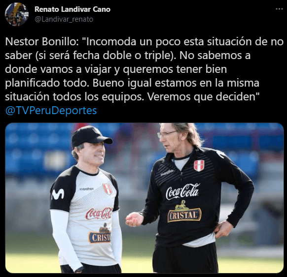 Por su parte, Néstor Bonillo contó detalles de un tema molesto para el cuerpo técnico: “Incomoda un poco esta situación de no saber (si será fecha doble o triple). No sabemos a donde vamos a viajar y queremos tener bien planificado todo. Bueno igual estamos en la misma situación todos los equipos. Veremos que deciden”. Para tomar en cuenta lo que dice ‘la mano derecha’ de Ricardo Gareca.