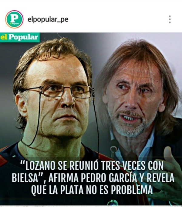 La noticia la brindó Pedro García de Al Ángulo de ‘Movistar Deportes’: “Desde Chile me contaron, de primerísima mano, ponle la firma, si quieres apuesta plata. Lozano se ha reunido, en 3 oportunidades en vía zoom, con Marcelo Bielsa. La reunión se dio y por qué en Chile, porque ahí vive el secretario de Bielsa”.