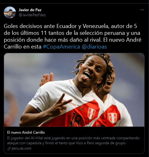 El rendimiento de André Carrillo está por encima de absolutamente todos en la Selección Peruana, por ahí la discusión sería con Gianluca Lapadula. ‘La Culebra’ quien hoy pertenece al Al-Hilal de Arabia Saudita no tiene ningún compañero que le haga sombra a su nivel presente.