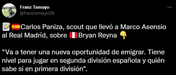 Uno de los responsables para la llegada del delantero sensación de la Selección Peruana, es el Sr. Carlos Paniza, reconocido scout, que fue director de captación del Mallorca. Colocando en el Real Madrid a Marco Asensio en su momento, con amplia experiencia en la base de menores. Él tiene historia con Bryan Reyna, lo colocó en su momento dentro del plantel principal del ‘viejo continente’.