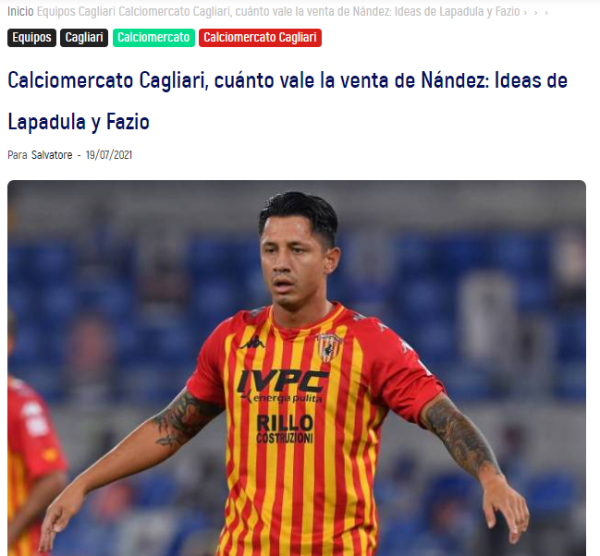 Según informa ‘Fantamaster’: “Si Cagliari se despidiera de Simeone, no se excluye que pueda evaluar una estocada real y concreta sobre Lapadula. Al delantero peruano le gusta el ‘rossoblù’, pero habrá que vencer a la competencia de cinco o seis equipos. Cuidado especialmente con Bologna, Udinese y Sampdoria”.
