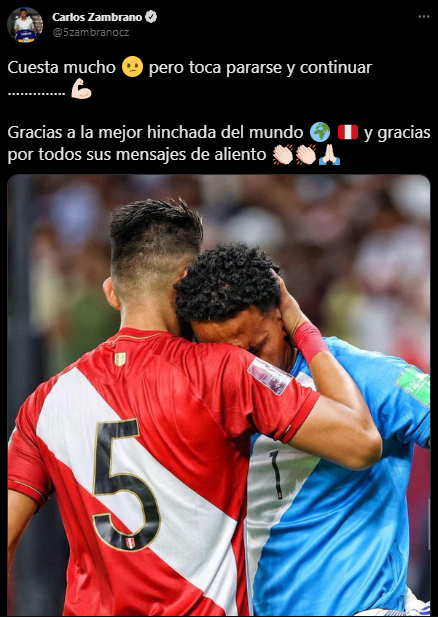 Mediante sus redes sociales, el defensor central ex Schalke 04 tuvo palabras de agradecimiento a todos los hinchas que apoyaron al ‘equipo de todos’ de manera incondicional: “Cuesta mucho, pero toca pararse y continuar. Gracias a la mejor hinchada del mundo, y gracias por todos sus mensajes de aliento”.