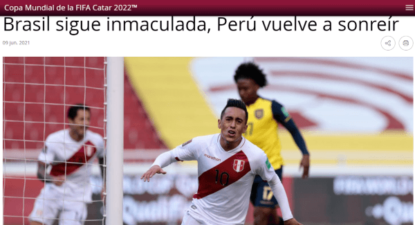 El triunfo de la Selección Peruana sobre Ecuador por 2-1 en Quito, fue una de las notas más altas en cuanto a sorpresa y trascendencia en el fútbol internacional. La FIFA al respecto hizo un análisis sobre las Eliminatorias Sudamericanas para Catar 2022.